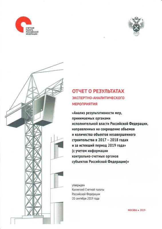 15 октября 2019 года в формате видеоконференции на портале Счетной палаты Российской Федерации состоялось подведение итогов экспертно-аналитического мероприятия «Анализ результативности мер, принимаемых органами исполнительной власти Российской Федерации, направленных на сокращение объемов и количества объектов незавершенного строительства в 2017-2018 годах и за истекший период 2019 года (с учетом информации контрольно-счетных органов субъектов Российской Федерации)».